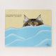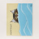 Tabby Cat Peeking Blue Funny Jigsaw Puzzle