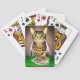 Playing cards in a portrait of a brown and tan tabby cat playing cards - and winning