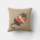 Double-sided Cushion - Tabby cat playing with red box and on other side playing with cat scratcher