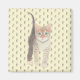 A tabby cat can be recognised by a distinctive 'M' shaped marking on its forehead. It also has stripes near its eyes, on its cheeks, back, legs and tail. This grey and brown tabby cat was lovingly hand drawn W.B. with Prisma colours. Images and background colour can be personalised. Text may be added if desired.