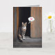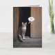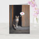 Cute tabby cat in a rustic old barn doorway with thought bubble and pink heart for thinking of you.