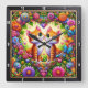 Tabby Kitten Floral Heart Wall Square Wall Clock