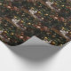 Playful tabby kitty cat has discovered the Christmas tree and all the tempting ornaments and is set to make a mess playing in typical cat fashion cat lovers Christmas holiday wrapping paper