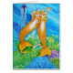 Two mermaid tabbies swimming under the sea with the golden fishes.