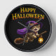 Tabby witch kitten happy Halloween whimsical wall Clock