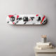 Diseño en base blanca y trozos rojos con letras negras. Agresivo y atrevido