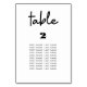 This wedding seating chart card features a minimalist layout and is perfect for your guests to find their seat. Customise this card by adding names and a number table. There is no minimum order quantity.