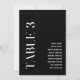 This customisable elegant Table three black and white template featuring an elegant modern font. Wedding Table Seating Cards will be a great addition to Wedding reception decor. Guest list is fully editable, so you can easily change guest names, just click 'Personalise this template'. Table number cards from 1 to 12 of same design also available.