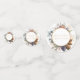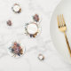 This table confetti is shown in a gold and white colour with a lovely floral bouquet print design also with a custom wedding names sample.