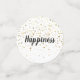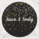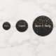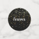 These table confetti pieces are a mix of Black and White and double sided with well-wishing comments for the bride and groom. Graphics of petite Golden-coloured stars grace both front and back. Customise this item. Sample texts are "Jason & Emily", "Congrats", "Happiness", "Together As One", "Love", "Forever".