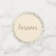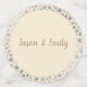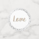 These table confetti pieces are a mix of Champagne and White double sided with well-wishing comments for the bride and groom. Graphics of petite grey coloured stars grace both front and back around the edges. Simple, yet elegant design. Sample texts are "Jason & Emily", "congrats", "Happiness"."Together As One", "Love", "Forever". Customise this item or buy as designed.