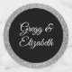 These table confetti pieces are a mix of Black, Silver and Dusty Blue. One side has the Blue faux glitter look and the other side a fine faux glitter print. Graphic of Dusty Blue glitter print and Silver glitter print. Sample text reads "love", "congrats", "sample names of Gregg & Lisa". Change to your own personalised text choices. Customise this item or buy as designed.