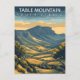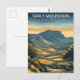 Capture the majestic beauty of South Africa with this stunning Table Mountain travel postcard! This captivating illustrated design features the iconic flat-topped Table Mountain, dominating the vibrant landscape of Cape Town. The stylised art beautifully showcases the rolling valleys and lush scenery leading up to this incredible natural wonder.