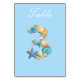 Table number card is shown with a blue background colour with a cute beach shells number.