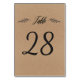Table number card in rustic laurel and script calligraphy on kraft paper background.