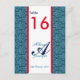 This is table number card. This card pattern is Damask. This card colour is blue.