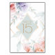 Table Number Card | Chic Trendy Coral and Lilac Aquarelle watercolor peony flowers, buds and greenery surround a gold geometric diamond frame . Artwork created for the BarefootBride™ by © WhimsicalArtwork™.