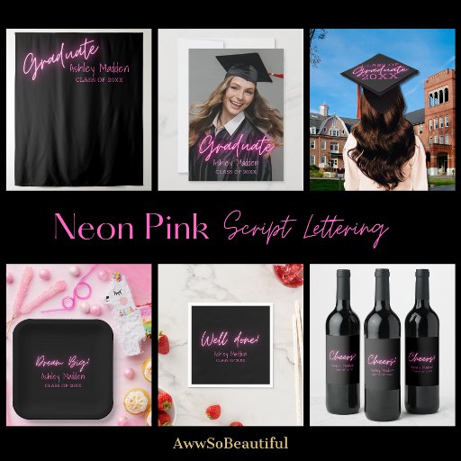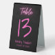 Celebrate your graduate with this fun, modern, and upbeat graduation Table Number Tent sign design featuring the word table in Neon Pink Script lettering. Personalised with the graduates name and class year! Let's Celebrate!