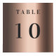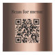 For restaurant, cafe, bar tables, Personalise and add your business logo, table numbers and QR code for your menu. A faux bronze looking background, black text.