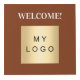 For restaurant, cafe, bar tables, Personalise and add your business logo, table numbers and QR code for your menu. Brown earth coloured background, white text.