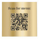 For restaurant, cafe, bar tables, Personalise and add your business logo, table numbers and QR code for your menu. A faux gold looking background, black text.