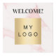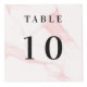 For restaurant, cafe, bar tables, Personalise and add your business logo, table numbers and QR code for your menu. Pink marble print as background, black text.