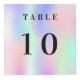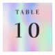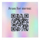 For restaurant, cafe, bar tables, Personalise and add your business logo, table numbers and QR code for your menu. A holographic, pink, purple and mint green background, black text.