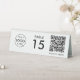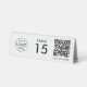 A simple custom white QR code resturaunt or cafe table tent table number double sided business sign template in a modern minimalist style which can be easily updated with your company logo, QR code and custom text.
