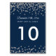 Elegant wedding "Table Number" design with Silver Faux Glitter Confetti Navy Blue and custom table number text.