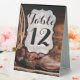 Table Number Tent Card Cowboy Boots Barn Wood Rust