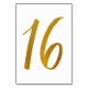 Table Number 16: This casual brush script table number card is set in a faux gold foil.