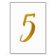 Table Number 5: This casual brush script table number card is set in a faux gold foil.