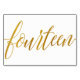 Table Number 14: This luxe elegant calligraphy table number card is set in a faux gold foil.