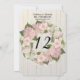Such an inexpensive way to add charm, warmth and welcome to your reception table decor! These Table number cards can be framed, place on a holder or used in many ways to direct your guests to their table seating for your formal wedding reception, bridal shower or formal business event. Simply change the table number for each one and place it in your shopping cart. This design has a hand painted pink and white hydrangeas mixed with blush pink and cream roses and succulent leaf foliage floral wreath design. These flowers grew in Audrey Jeanne's gardens and were picked fresh to paint from life. A worn, rustic country, barn wooden fence board background in soft white with a hand tatted doily border around the wreath finishes off the pretty design that is perfect for backyard garden, outdoor venues like barn, farm or even a romance filled winery wedding. Artwork and graphic design copyright, Audrey Jeanne Roberts, all rights reserved.