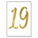 Table number cards - Number 19 - with gold foil effect (faux, printed as an image) on white background