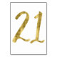 Table number cards - Number 21 - with gold foil effect (faux, printed as an image) on white background
