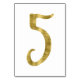 Table number cards - Number 5 - with gold foil effect (faux, printed as an image) on white background