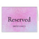 This is a reserved table sign card. It is elegant script calligraphy for fancy wedding party, chic bridal shower, engagement or anniversary. It is classy placement note cards with name of bride and groom family, VIP guests, bridesmaids, groomsmen, best man, maid of honour etc. Text and design can be customised for any invitation card.