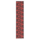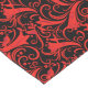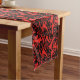 Table runner to accent your table decor is shown in a black and red swirl floral print.