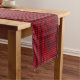 This holiday table runner is shown in a black and red buffalo plaid print.