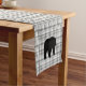 This holiday table runner is shown in a lovely grey plaid and bear print.