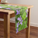 As with so many flowers, trees and plants, there are a number of stories that pertain to the "history" of herb violets. The violet originated from the tears of Io, according to Greek legend. Io was a beautiful nymph, dearly loved by Zeus. To hide his beloved from his jealous wife, Hera, Zeus turned Io into a white cow. Finding the pasture grasses coarse and bitter, Io cried and Zeus turned her tears into violets which were more tender and much sweeter. Napoleon Bonaparte was also quite fond of violets; so much so that some referred to him as Corporal Violets. While he was in Exile in Elba, the violet became the symbol for his sometimes secretive supporters. One of the reasons, however, these are referred to as "herb" violets is that the, historically, were used in home remedies for everything from headaches to skin cancer. This lovely image is mirrored and tiled, end-to-end, down the length of this beautiful table runner that brings a gorgeous pop of colour to your home.
