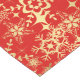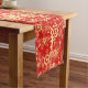 Table runner to accent your table decor is shown in a lovely gold and red holiday snowflakes print design.