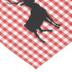 This holiday table runner is shown in a lovely red plaid and deer print.