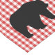 This table runner is shown in a lovely red plaid and Yellowstone bear print design.