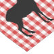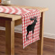 This table runner is shown in a lovely red plaid and Yellowstone moose print design.