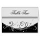 An elegant, classic black and white table seating card. Customisable. There is room inside for you to add the names of those you have assigned to each table.