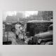 Old 1930s photo of men unloading meat from a panel truck in the wholesale district, Omaha, Nebraska. Photo by FSA photographer John Vachon.