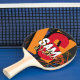 Stylish table-tennis-racket personalised with his first name and surname in cool font style, over a black background with big oversized initial letters with shadow... modern monogrammed design, with the name of the stylish player.