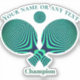 Retro style design of two table tennis rackets and a ping pong ball in turquoise green with a hypnotic pattern on a yellow background for ping pong lovers and tabletennis players.